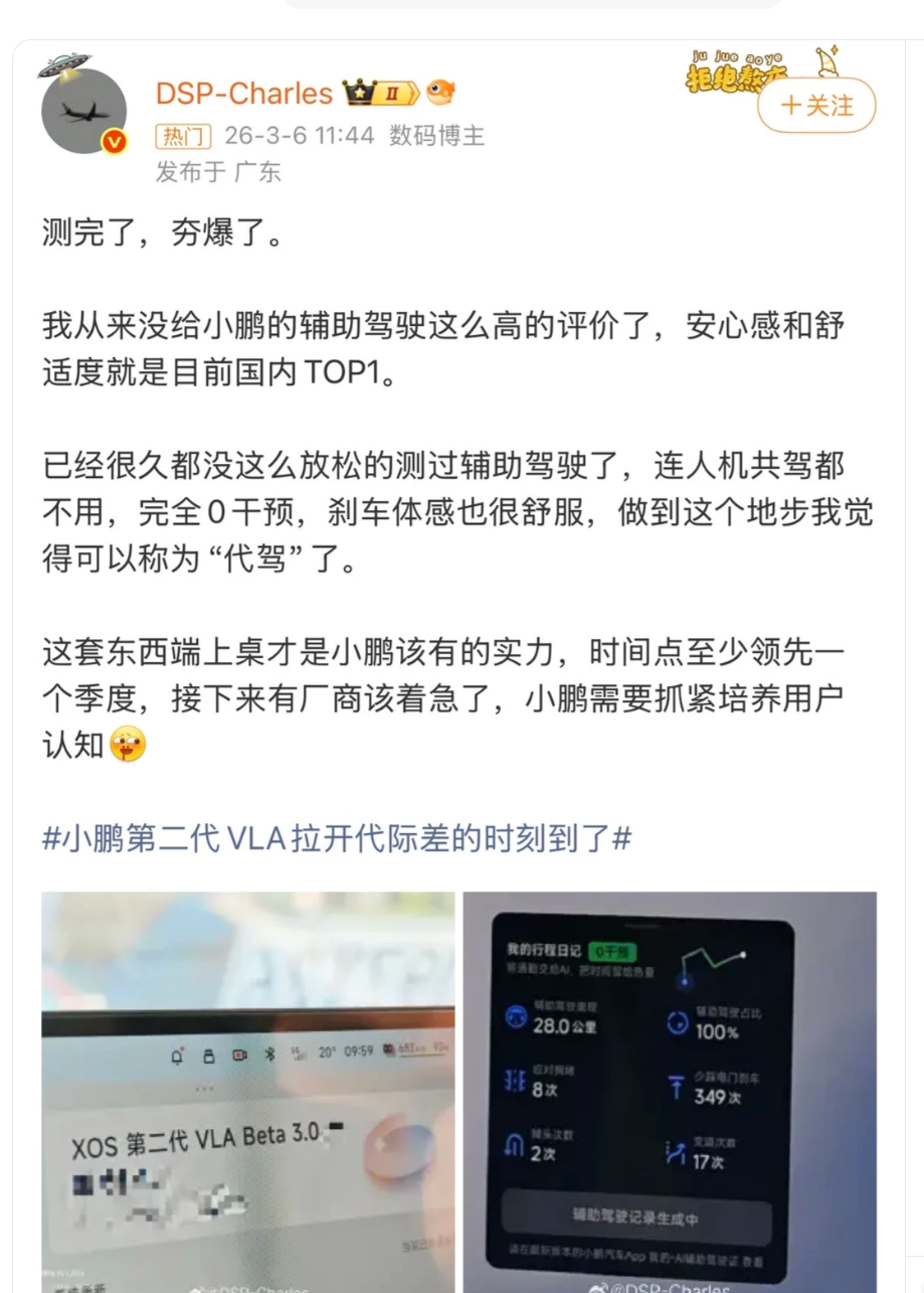 小鹏第二代VLA智驾系统重磅亮相,瞬间点燃车友讨论热情,不少网友直言11号后必到店试驾体验,这款全新智驾系统也被贴上“夯爆了”的标签。而围绕小鹏智驾的讨论,也从产品本身延伸至技术路线与行业布局——坚持纯视觉路线、精准押对每一次新技术风口,让小鹏在智驾赛道的竞争中愈发笃定,反观同行或走弯路或慢半拍,小鹏的智驾发展之路,也成为新能源行业技术抉择的典型范本。